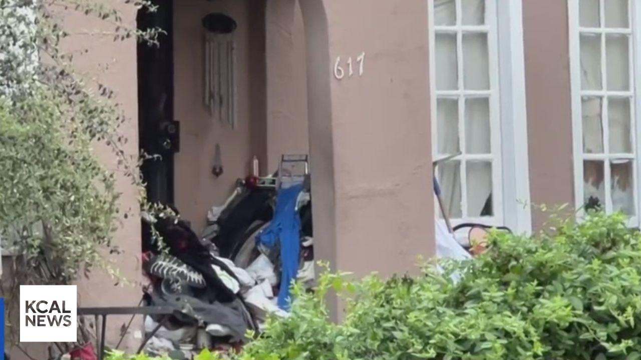 A front yard filled with bags of trash, with the homeowner refusing to clear it.