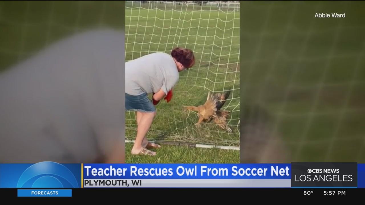 Teacher saves owl trapped in soccer net in Wisconsin