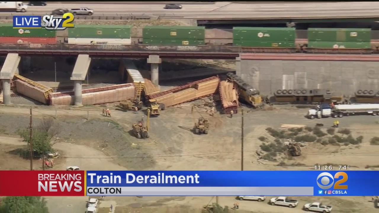 Train Hauling Lumber Derails In Colton, Sparks Fire