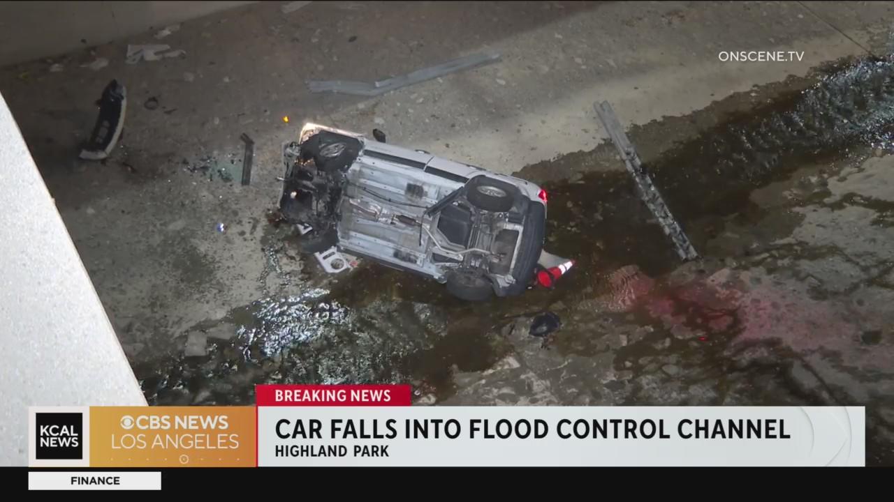 Vehicle drives into Highland Park flood control channel
