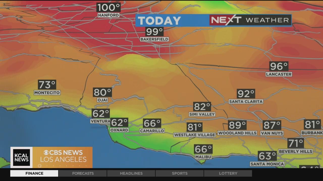 Cloudy in the morning for most of the coast and clear for the inland communities. There will be a wide range of temperatures for SoCal this afternoon with 60s along the coast and 90s for the inland areas. A slight chance for showers is in the forecast for the mountains.