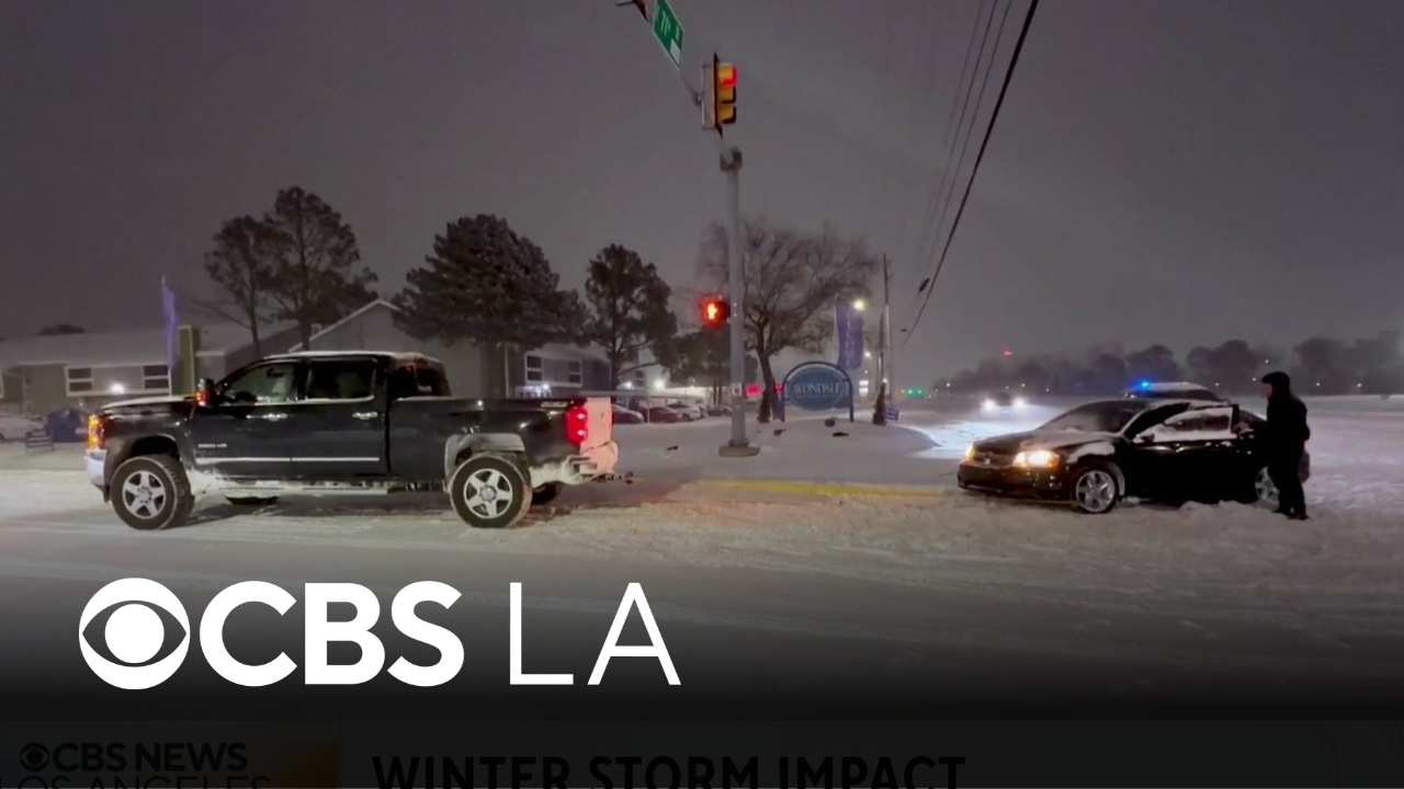 A pursuit ended with a crash at LAX on Sunday morning, and the winter storm is causing travel chaos throughout the U.S. Alys Martinez reports.
