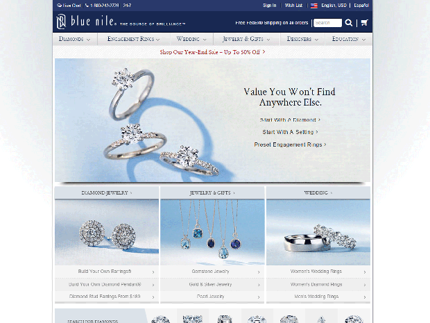 Every order made through jeweler Blue Nile qualifies for free FedEx shipping for the U.S. and 43 other countries. Orders ship same day (or within two business days for items with diamonds), and will arrive within one to five days of shipment. Shoppers should note that free shipping is one-way only, and they will be responsible for all return shipping costs.