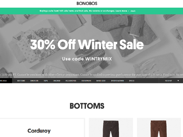 Men's clothier Bonobos offers free shipping on online orders with no minimums. Purchases are shipped via UPS Ground and usually arrive within one to five business days of shipment, with addresses in the Northeast near the Bonobos warehouse getting the fastest delivery service. Orders placed after 4 p.m. ET on Friday will not be shipped until the following Monday. Shoppers can upgrade to two-day or next-day shipping for an additional cost.