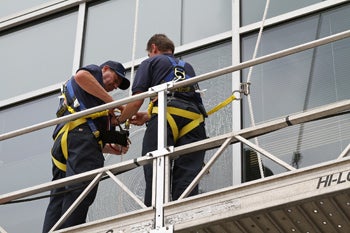 BNET: The next job was cleaning windows of an office building on a scaffold.