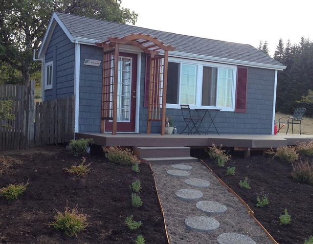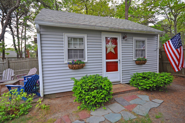 It is about 300 square feet and is located about half a mile from the beach, according to the listing. It has a full bed, kitchen with an oven, stove and refrigerator, a bathroom with a shower and a side deck with a charcoal grill.