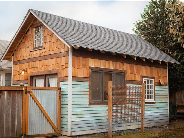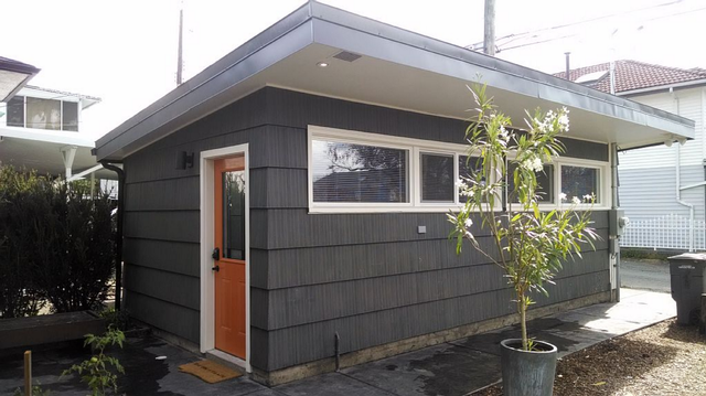 This backyard shed has been renovated into a studio cottage with one bathroom that sleeps up to four people. It costs an average of $100 per night.