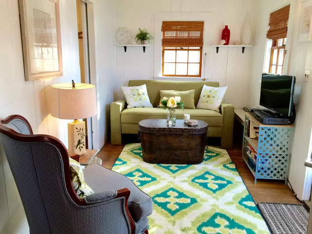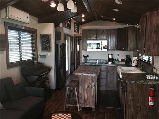 This one-bedroom, one-bathroom tiny house sleeps up to three people and costs an average of $134 per night.
