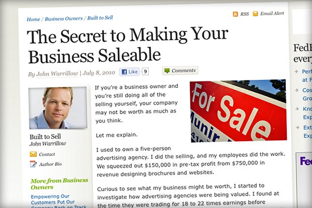 Even if you're light years away from pursuing your exit strategy, now's the time to start planning. For smart advice on what to do now, check out the Built to Sell blog, written by John Warrillow, a serial CEO who has started and exited four companies and literally written the book on how to sell a business.