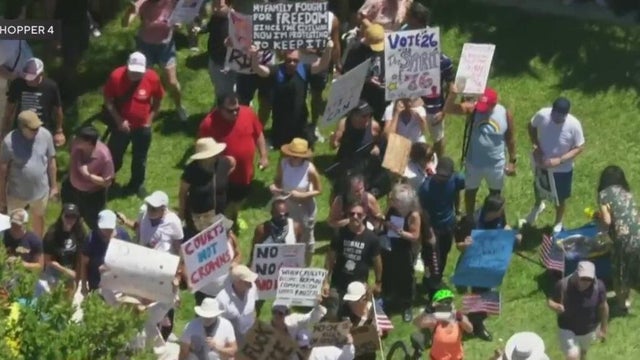 Chopper 4 flew over the scene on Saturday, where protesters chanted and held signs and American flags.