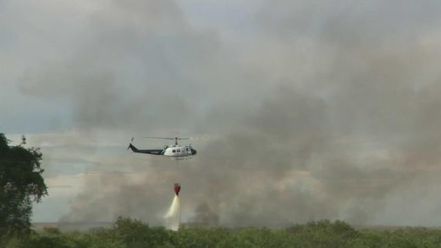 Helicopters are making water drops in an effort to contain the wildfire which has already burned 42, 000 acres.