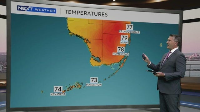 Bright blue skies and lots of sunshine will push temperatures into the low 80s across both Miami-Dade and Broward Counties.