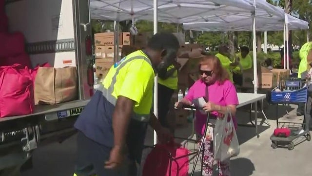CBS News Miami's Trish Christakis reports as hundreds lined up for food distribution at LoanDepot Park.