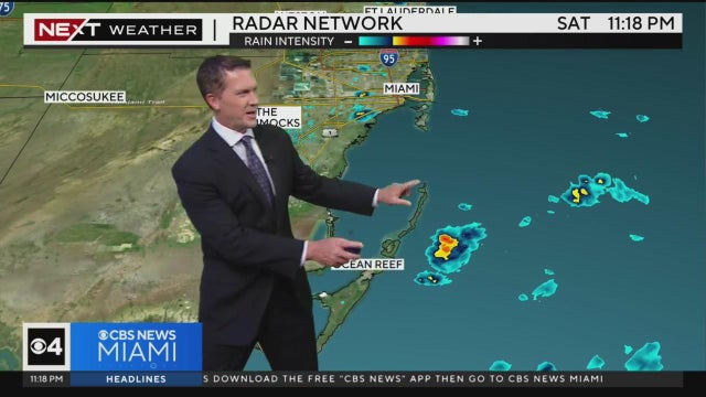 CBS News Miami's NEXT Weather Meteorologist Dave Warren says to expect a mainly dry for Saturday night going into Sunday, with a few possible showers moving through the area overnight.