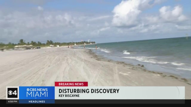 CBS News Miami's Peter D'Oench speaks to surprised people at Key Biscayne after a worker discovered a human head Tuesday morning that had apparently washed up on the beach behind the Key Colony II Ocean Sound condominium building.