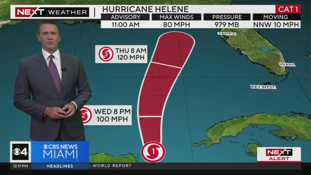 NEXT Weather meteorologist Dave Warren says all of South Florida and the Florida Keys are under a tropical storm warning as Hurricane Helene moves in the direction of Florida's Gulf Coast.
