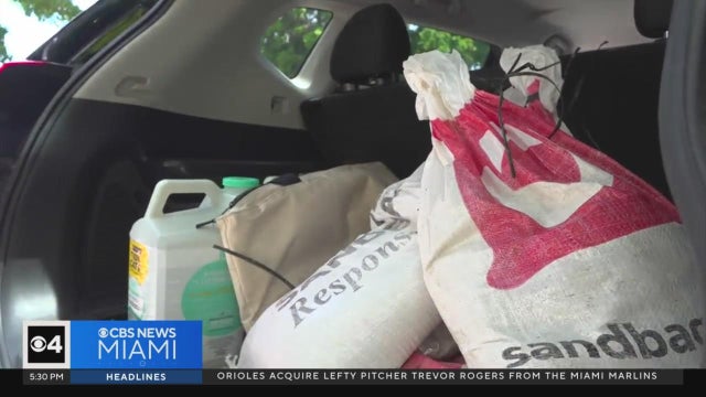 CBS News Miami's Trish Christakis was at a giveway in North Bay Village to share how the community is coming together to prepare before a big storm hits.