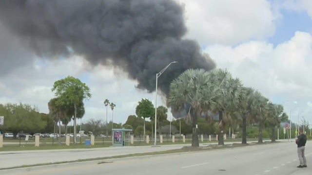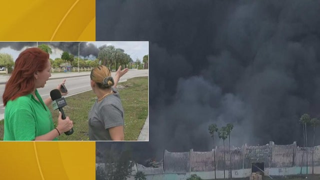 A four-alarm fire is continuing to burn at a warehouse in northwest Miami-Dade s crews from around the region race to the scene to assist in the fight against the flames. CBS News Miami’s Nikiya Carrero was on the ground near the fire to explain how the dangerous situation was unfolding.