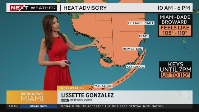 NEXT Weather meteorologist Lissette Gonzalez says South Florida and the Keys are under another heat advisory. The chance for rain goes up at the beginning of next week.