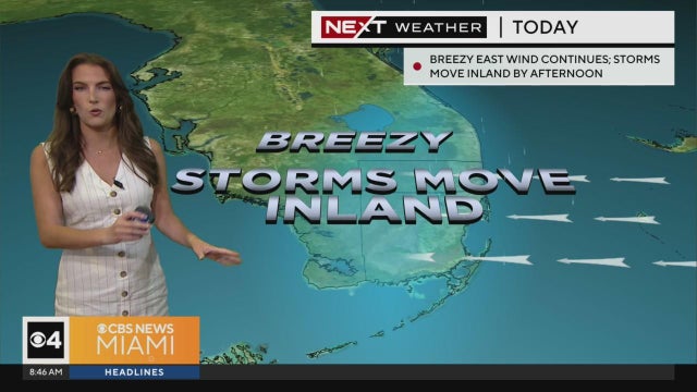 CBS News Miami's NEXT Weather Meteorologist KC Sherman says to expect breezy conditions for Sunday as winds move some possible storms into the inland by the afternoon.
