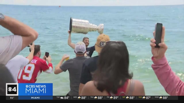 CBS News Miami was there Tuesday morning as the Florida Panthers took the Stanley Cup to the beach.