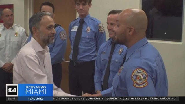 A Broward County man and avid runner got the chance to thank the team that saved his life after he suffered a series of cardiac arrests. CBS News Miami's Steve Maugeri was there for the reunion.