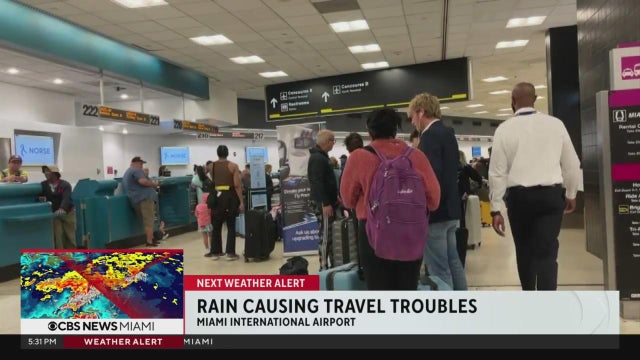 CBS News Miami's Tania Francois is at Miami International Airport, where hundreds of travelers are facing flight delays as heavy rain pours throughout South Florida.