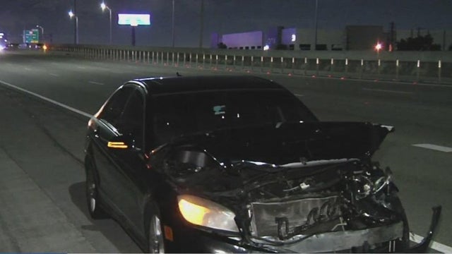 Anna McAllister reports the woman was standing outside her after it had been hit when another driver hit the car, the impact propelling it into her.