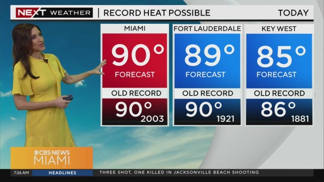 NEXT Weather meteorologist Lissette Gonzalez says Miami could see record heat. Isolated storms in the afternoon, some could be strong.