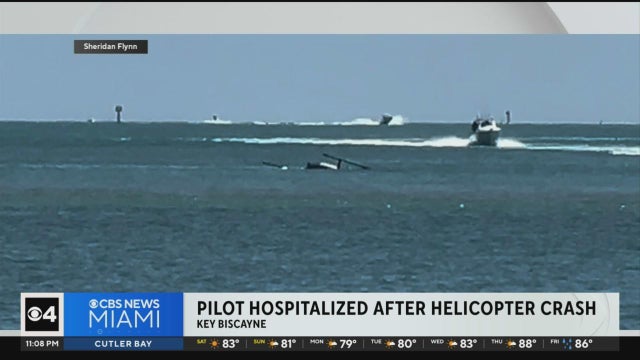 A pilot was hospitalized after a helicopter crashed into the water near Key Biscayne on Saturday afternoon.