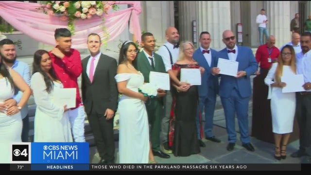 This Valentine's Day, 20 couples tied the knot on the steps of the historic Miami-Dade County Courthouse.