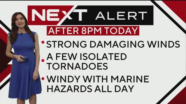 NEXT Weather meteorologist Lissette Gonzalez says it will be warm and windy. A NEXT Weather Alert has been issued for Tuesday evening because severe storms are possible.