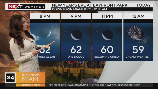 CBS News Miami's NEXT Weather Meteorologist KC Sherman says Sunday will have a chilly start but there will clear skies throughout the day and into New Year's Eve, so don't forget to bring a jacket to any fireworks displays this evening.
