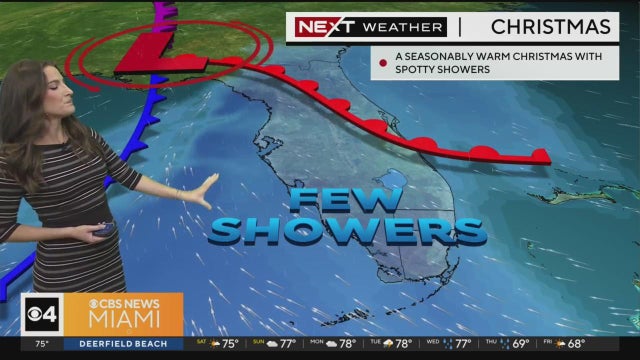 CBS News Miami's NEXT Weather Meteorologist KC Sherman South Florida will experience low rain chances Saturday as you either begin or continue your holiday travels with a few quick showers. Also, she explains what a system that has been bringing wetness to the West will bring for us later this week.