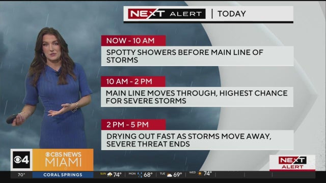 CBS News Miami's NEXT Weather Meteorologist KC Sherman has the latest on the tornado watch in effect for South Florida as severe weather rolls through the Florida Keys, Miami-Dade and Broward Counties.