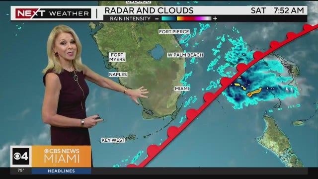 CBS News Miami's NEXT Weather Meteorologist Cindy Preszler says Saturday will be mostly cloudy with some slow-moving storms and possible flooding. And to expect things to dry out as we head into Sunday.