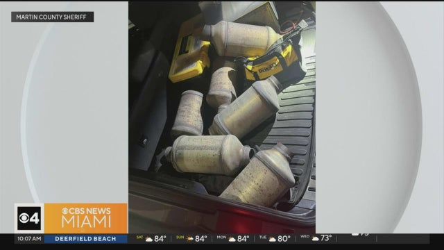 An alleged statewide convert catalytic converter theft spree is apparently over when a man and woman from Miami were arrested after being found with a trunk full of them.