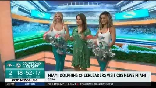 The Miami Dolphins Cheerleaders visit CBS News Miami's station and took part in the stations morning tailgate breakfast.