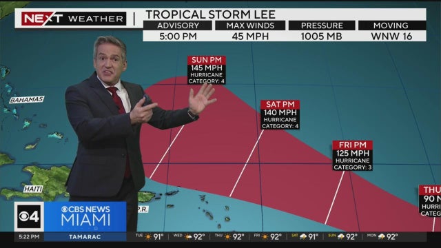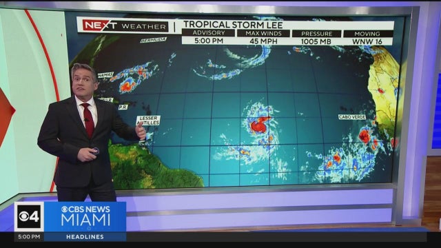 The CBS News Miami NEXT Weather team is tracking Tropical Storm Lee which formed between Western Africa and the Windward Islands on Tuesday afternoon.