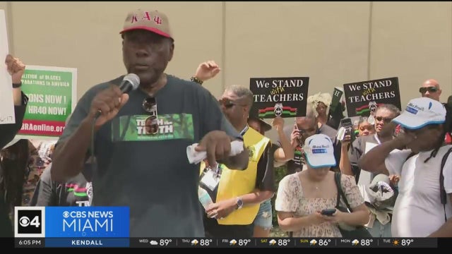 Ted Scouten reports on how dozens of teachers, students and labor leaders marched to a Miami school district headquarters to protest Florida's new standards for teaching Black history, which have come under intense criticism for what they say about slavery.