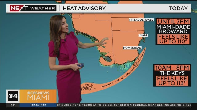 NEXT Weather meteorologist Lissette Gonzalez says record or near record heat is possible in Miami. "Feels like" temps will continue to be in the 100s.