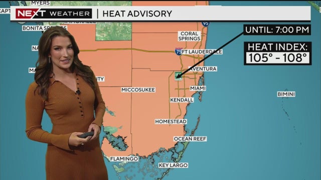 NEXT Weather meteorologist KC Sherman says a Heat Advisory is in effect today for Miami-Dade, Broward, and Monroe counties as the "feels like" temperatures today will be in the triple digits.