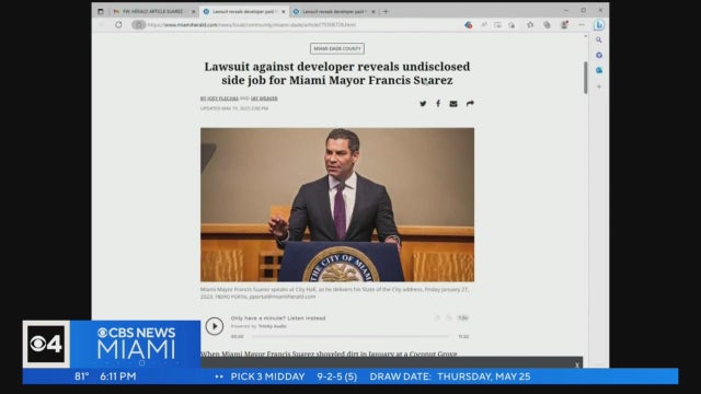 City of Miami Mayor Francis Suarez is under scrutiny over report alleging he was paid thousands of dollars for work as a consultant for a developer building a project in city limits.