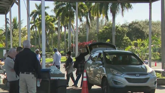 CBS News Miami's Steve Maugeri reports how several dozen people came to the event in hopes of getting enough food to feed their families.