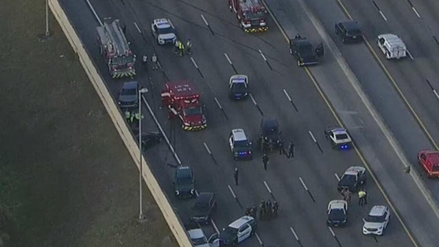 Chopper 4 on the scene of the crash where one person was seen in a stretcher and handcuffs.