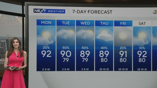 NEXT Weather meteorologist Lissette Gonzalez says Miami-Dade and Broward are under a heat advisory through 6 p.m. The chance of rain goes up on Tuesday and lasts through Thursday.