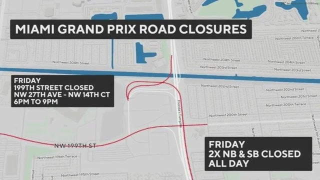 The road closures throughout Miami Gardens, where the racing event takes place, begin Thursday.