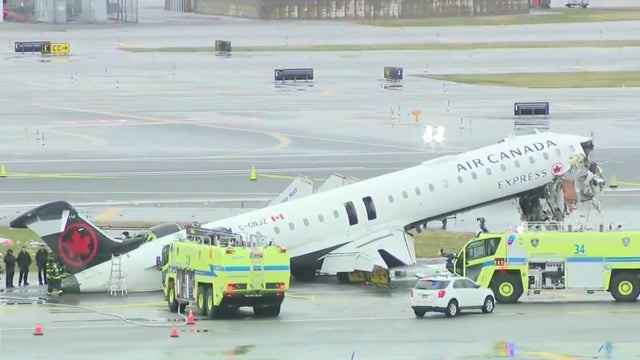 Two pilots of an Air Canada airplane were killed when the aircraft collided with a firetruck at New York City's LaGuardia Airport on Sunday night, officials said.