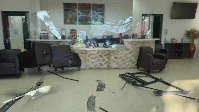 Cleanup efforts are underway at a Broward County business after a truck crashed into the front of it on Monday morning.