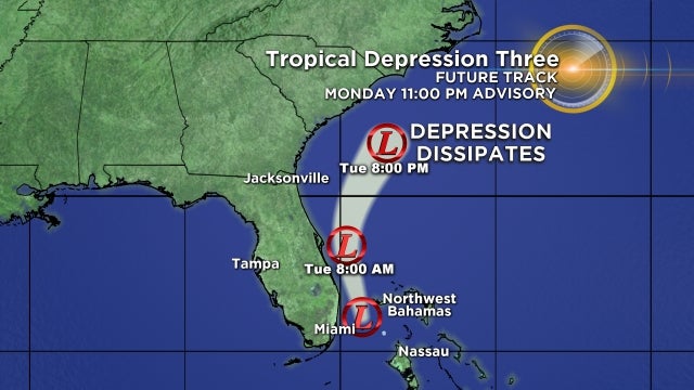 Tropical Depression No. 3 Forms To Southeast Of Florida Coast